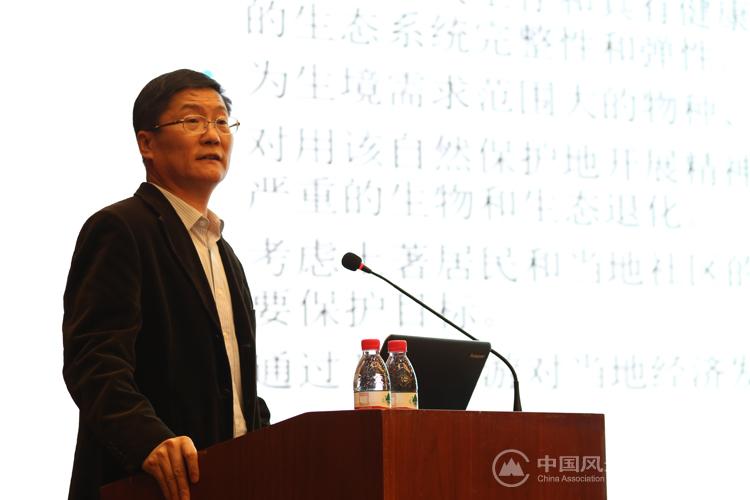 朱春全代表以“以保护管理目标基础的风景名胜区等自然保护地管理分类” 为题发表了主旨报告,介绍了世界自然保护联盟所有六类自然保护地的共同目标及各类保护地的不同目标,分析了中国自然保护地类型与IUCN管理分类,以及相互对应关系,并对未来的保护地体系分类提出了建议。