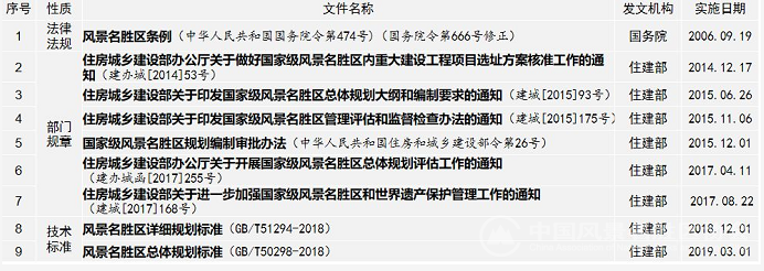 法律法规、部门规章、技术标准等是规划编制的依据。自风景名胜区体系建立以来,国务院、部委颁布了诸多相关规范性文件。在机构和行政体制改革之后,风景名胜区的相关职能移交到林草局,之前的法律法规和规范性文件是否仍然试用?