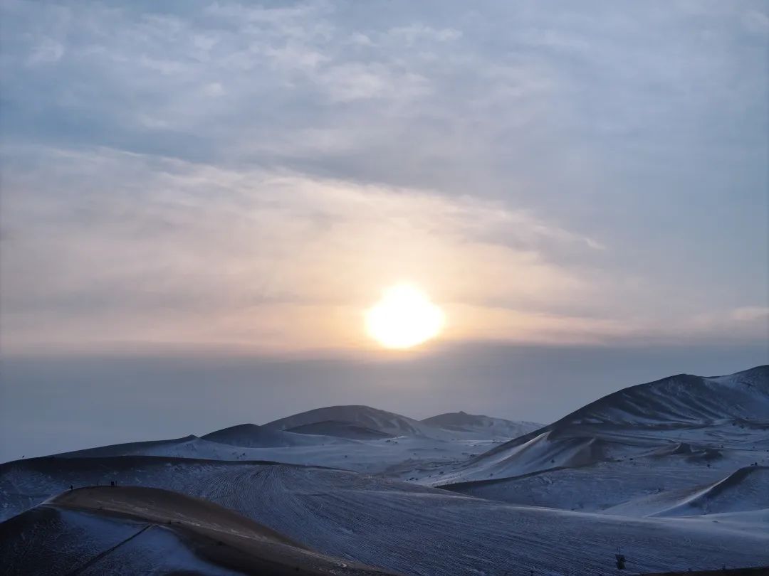 雪后鸣沙山月牙泉 银装素裹美如画