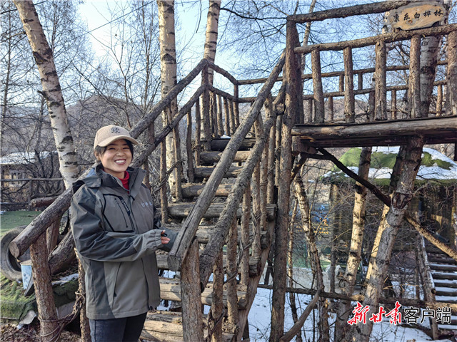 “坐在垫子上,背挺直,双腿摆正……”杨晓会是康乐县八松乡烈瓦村村民,现已成为康乐白桦林景区工作人员,主要负责景区的丛林滑梯项目,维持该项目的现场秩序,让游客在游玩项目时做好安全措施。