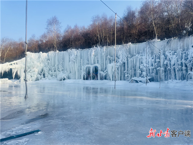 临夏州康乐县白桦林景区的冰柱、冰挂和冰瀑晶莹剔透