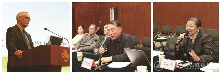 图自左至分别为:IUCN全球自然保护地项目主管Trevor先生做关于绿色名录的专题培训;新葡8883官网AMG官网会长王凤武进行现场提问;